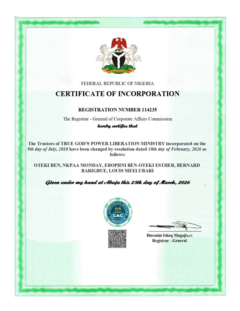 OCHIDOZ LTD successfully managed the complex post-incorporation process for TRUE GOD’S POWER LIBERATION MINISTRY by facilitating the official removal and replacement of three trustees. Our team navigated the stringent Corporate Affairs Commission (CAC) requirements, including the mandatory public notices and documentation needed to update the ministry’s constitution. Through meticulous filing and regulatory follow-up, we ensured the ministry’s corporate records were fully regularized and legally compliant.